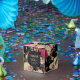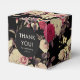 Det moody blommönstret i elegant tackar dig för att du har en favoritbox för gäster med en vacker röd, rosa och vit blommigt och grönt mönster på en dramatisk svart bakgrund med anpassadet tack för texten.