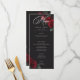 Bär elegans för ditt gotiskinspirerade firande med vårt fängslande, långa menykort för bröllop. En mjuk svart bakgrund ger perfekten arbetsyta för en fängslande, men underskattad bukett. Föreställ dig ett hörn arrangemangt av det muterade blodet röd ros, där rikens röda nyanser blandas med mörk grönt löv. Den här eaterala designen utstrålar tyst sofistikering, perfekt för den blivande bruden att söka efter en gnutta romantiskt mörker. Ett skript med elegant och vintage tillkännager ditt kort, medan dina detaljer visas i ett modernt teckensnitt och ser till att de visas på ett bra sätt. Den här fantastiska designen skapar en verkligt oförglömlig design för din speciella händelse, som anger tonen för ett moody firande och elegant i kärlek. Skapat av Farmhouse Press.