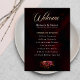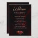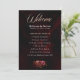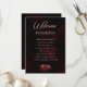 Elegant chic mörk röd burgundi och svart bröllopsprogram. Ange tonen för ett andande firande med det här elegant gotiska moody bröllopsprogrammet-kortet som innehåller en dramatisk blandning av djupröda och svarta blommigtar. Rik burgundi ro, mörk lövning och subtila gotska accenter skapar ett påfallande romantiskt och sofistikerat estetiskt. Den förfinade typografin, som kombinerar elegantens skript med klassiskt serif typsnitt, säkerställer en tidlös men edgy attraktion. Perfekt för att leda gästerna genom ceremonin ger det här programkortet en aning mysterium och allure samtidigt som det kompletterar ditt gotiska, moody eller vintage-inspirerade bröllop-tema.