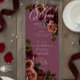 Embrace timeless elegance for your gothic-inspired celebration with our captivating long wedding menu. A soft burgundy background provides the perfect canvas for a captivating, yet understated bouquet. Imagine a corner arrangement of muted rose blooms, where soft rust blush and rich burgundy hues mingle with dark green foliage. This ethereal design exudes quiet sophistication, perfect for the couple seeking a touch of romantic darkness. An elegant, vintage script announces your design, while your menu details are showcased in a modern font, ensuring they stand out beautifully. This enchanting design creates a truly unforgettable design for your special day, setting the tone for a moody and elegant celebration of love. Created by Simply Farmhouse Press.