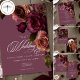 Embrace timeless elegance for your gothic-inspired celebration with our captivating wedding save the date card. A soft burgundy wine background provides the perfect canvas for a captivating, yet understated bouquet. Imagine a corner arrangement of muted rose blooms, where soft rust blush and rich burgundy hues mingle with dark green foliage. This ethereal design exudes quiet sophistication, perfect for the couple seeking a touch of romantic darkness. And elegant vintage script announces your card, while your wedding details are showcased in a modern font, ensuring they stand out beautifully. Created by Simply Farmhouse Press.