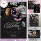 Lägg märke till er berättelse om kärlek med lite underskattad elegans. Våra moody bröllop välkomnas av en häpnadsväckande kontrast. En mjuk svart bakgrund skapar en arbetsyta för en informell bukett av muterade pastellblomningar. Föreställ dig mjuka nyp, lavenders och dammiga blues, som sitter i ett löst, naturligt stil. Den här eaterala designen skapar förutsättningar för ett intimt och hjärtligt firande, en perfekt för paret som vill ha en aning tyst romantik. Dina uppgifter om bröllop visas i ett modernt typsnitt och ser till att de framträder utmärkt mot den dramatiska bakgrunden. Den här fantastiska sviten är perfekt för vilken säsong som helst och skapar en verkligt oförglömlig design för din speciella dag. Skapat av Farmhouse Press.