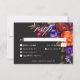 Ta till dig den vackra skönheten hos en skörd av fallande blommigt med vårt fängslande responskort från bröllop med middagsval. En dramatisk, men mjuk svart bakgrund ger perfekten arbetsyta för en helt realistisk bukett. Föreställ dig en kraftig explosion av färg, med ro i magenta för orange och mörk, med små blommor och lila i rosa och vid sidan av persiko-magenta och andra levande morsor. Lush, mörk grönt lövning slutför det arrangemanga och tillför ett inslag av naturlig elegans. Den här fängslande designen är perfekt för vilken säsong som helst, vilket återspeglar den passionerade intensiteten i din kärlek-artikel. Dina uppgifter om bröllop visas i skript för elegant och ser till att de framträder på ett utmärkt sätt mot den dramatiska bakgrunden. Den här fantastiska designen skapar en verkligt oförglömlig inbjudan att fira din speciella dag. Skapat av Farmhouse Press.