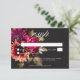 Förbered den vackra sommarsolnedgången eller riken av höstskörden med vårt infångande bröllop-svarskort med detaljer men inga middagsval. En dramatisk, men mjuk svart bakgrund ger perfekten arbetsyta för en helt realistisk bukett. Föreställ dig en kraftig explosion av färg, med morsa i djup magenta och lila, med mjuk rosa ros bredvid feta solblommor i orangen guld. Lush, mörk grönt lövning slutför det arrangemanga och tillför ett inslag av naturlig elegans. Den här fängslande designen är perfekt för vilken säsong som helst, vilket återspeglar den passionerade intensiteten i din kärlek-artikel. Dina uppgifter om bröllop visas i skript för elegant och ser till att de framträder på ett utmärkt sätt mot den dramatiska bakgrunden. Den här fantastiska sviten skapar en verkligt oförglömlig inbjudan att fira din speciella dag. Skapat av Farmhouse Press.