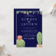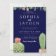 Elegant Mörk Blåkaktus Vattenfärgsfärg Bröllop Inbjudningar