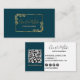 Elegant Mörk Bleu och Blommigt Guld Löv QR Visitkort