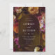 En elegant mörk-bröllopsinbjudan för blommigt med ett guld arch-ram och kalligrafteckensnitt. Vackra oljefärgade blommor i jorda färg av rött, gult, orange, rosa och grädde. Redigera själv inbjudan med verktygen online i Zazzle. Utformningar är platta tryckta illustrationer/grafik - INTE AKTUELL FOIL.