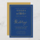 Anpassningsbar Listing: Mörkare marinblått än min andra lista Klassisk underskattad marinblå och vit bröllopsinbjudan med ett modernt drag som visar eleganten på ord "Bröllop" och guld gräns.