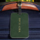 En elegant bagagetagg med mörk grönt läder struktur med guld-skriptaccenter. Den här snyggten och den sofistikerade designen ger en lyxig beröring åt dina resandebehov och skapar det enkelt att identifiera ditt bagage med en förfinad professionell.