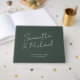 Skölj dina minnen från bröllop med den moderna jägaren grönt bröllop gäst bok som visar ditt namn i ett modernt handskript - modernt och elegant. All inslag som är designad för gästen bok i personligt bröllp - text och färg - kan ändras i verktyg om du vill.