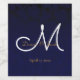 Elegant Mörk Navy Blue Guld White Monogram Blommig Vinflaska Etikett