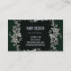 Ett elegantt, modernt, mörk - den gröna smaragdvisitkorten med en älskvärd vintage, en blom- ram och två parar av sax/sax. Perfekt för hårstylister, hairstylists, hårskänkar, cosmetologists, cosmetology, salonger och mer!
