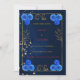 Meddela om din speciella dag med detta eleganta blå blomstermotiv "Spara datum"-kort med en lyxig guldram. Designat med vackra marinblå akvarellblommor och en klassisk guldbård, ger detta kort en tidlös och sofistikerad look som passar perfekt för moderna, klassiska eller formella bröllop.