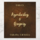 Vi presenterar vår exklusiva anpassade vinetikett, designad för att perfekt komplettera din speciella dag. Med sin sofistikerade mörkbruna falska läderstruktur i bakgrunden och elegant förgylld text, utstrålar denna vinetikett en känsla av lyx och förfining. De anpassningsbara elementen låter dig anpassa etiketten med ditt valda datum, parets namn och platsen för din bröllopsfest, vilket skapar en verkligt unik och minnesvärd souvenir.