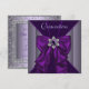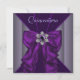 Elegant lila band lila Quinceanera-inbjudan. Lägg till dina uppgifter på framsidan och baksidan genom att lägga till dina evenemangsuppgifter, typsnittsstil, teckenstorlek och färg samt formulering. Observera att alla inbjudningsdesigner du hittar på Zazzle är tryckta grafik på platt pappersmaterial utan faktiska ädelstenar, band, upphöjda, präglade eller tillagda delar eller bitar.