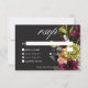 Meddela din kärlekshistoria med en touch av underdriftig elegans. Vårt dramatiska svarskort för bröllop med tre middagsalternativ har en fängslande kontrast. En mjuk svart bakgrund skapar en duk för en informell bukett av dämpade pastellblommor. Föreställ dig mjuka rosa, lavendel och dammiga blå nyanser, varsamt arrangerade i en lös, naturlig stil. Denna eteriska design sätter scenen för en intim och hjärtlig fest, perfekt för paret som söker en touch av tyst romantik. Dina bröllopsdetaljer visas i ett modernt teckensnitt, som säkerställer att de sticker ut vackert mot den dramatiska bakgrunden. Denna förtrollande svit är perfekt för alla årstider och skapar en verkligt oförglömlig inb