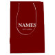 Elegant mörkröd och vit presentförpackning med eget namn,