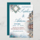 Ge din speciella dag en tidlös elegans med denna marockanska bröllopsinbjudan, med lyxiga tealtoner, mjuka guldaccent och intrikata arabeskmönster.