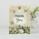 Uttryck din tacksamhet med det tidlösa vackra tackkortet Moss & Moonlight. Med en utsökt vintage-spetskant, ömtåliga elfenbensfärgade rosor och smaragdgröna juvelbesatta accenter fångar denna design charmen hos romantisk elegans. Eteriska fjärilar, mjuka botaniska element och invecklad filigrandetaljering ger en lekfull, sagolik touch, vilket gör detta perfekt för bröllop, Quinceañeras, Sweet 16-fester, brudshower och andra sofistikerade evenemang. Personifiera insidan med ditt hjärtliga budskap för att skapa ett minnesvärt minne.