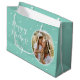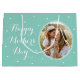Make your Mom feel extra special this Mother's Day with a personalized gift bag! This elegant design features "Happy Mother's Day" in stylish script typography, sweet little love hearts, and your favorite photos within an oval-shaped frame. It's the perfect way to showcase photos of Mom, the kids, family, or even beloved pets. This pretty gift bag is available with your choice of a matte or glossy finish. Template colors: mint green and white.