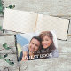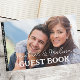 Detta herr och fru Bröllop Guest Bok har fet vit text och skript för elegant som täcker ett foto av bruden och trippen. Om du vill ändra eller ta bort fotot och text på alla sidor klickar du på knappen Anpassa.
