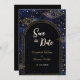 Meddela din speciella dag med den här eleganten mystikalt Spara datumkortet. Med en svart bakgrund i riken med skuggande faux guld-stjärnor och konstellationer utstrålar den här designen en känsla av kosmisk romantik och tidlös elegans. Den förfinade layouten och de roliga detaljerna skapar en drömatmosfär, perfekt för stjärnande själar och förtrollade kvällar. Ett intressant sätt att markera början på din kärlek-artikel i stjärnorna.