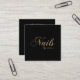 Det här affärskortet i contemporaryn har modern, elegant, typografi i rik guld, som har en vacker, klassisk, svart bakgrund. På baksidan, är din fullt kontaktinformation...inklusive webbplats, medieikoner i social, medieferensen i social och QR-koden. Lägg till egen information genom att följa länken "Anpassa den här mallen". Följ samma länk för att överföra din egen QR-kodavbildning. Den här unika utformningen av kreativet ger säkert intryck! Perfekt för alla nagel-professioneller.