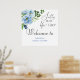 Elegant Något blått innan jag gör vattenfärgsfärgad blommigt Möhippa Välkomstskylt Poster dekoridé med baby blue blommor och grön.