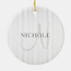 Elegant Namn Monogram & Thin Grått Ombre Rand Julgransprydnad Keramik