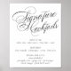 Den romantiska och tidlösa skylten "Namnteckning Cocktails" lägger till en enkel elegans till alla klassiska bröllopsmottagningar, duschar eller party-motiv. Den lyxiga skriptmallen har en nyfiken och vacker modern svart kalligrafiklammer på vit bakgrund. Det vackra teckensnittet med anpassadets bakgrund färg gör det enkelt att passa alla teman. För andra färg eller matchande produkter, gå till butiken JustFharryn Zazzle eller kontakta designern, c/o Fharryn@yahoo.com Alla höger reserverade. #zazzlemade