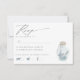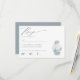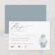 Elegant Nautical Beach Seashell Modern Script-kort med skuggor av havsskumblått och lera grått. Det finns en vattenfärg i flaska överst med en samling känsliga stjärnor och snäckor. Dina uppgifter, tillsammans med vår moderna chic-skripttypografi, gör detta till perfektens svarskort för din elegant- eller målbröllop. Kontakta oss på cedarandstring@gmail.com om du behöver hjälp med designen eller matchande produkter.