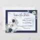 Den marinblå och blommigten med ett krympande champagneankare för färgaden för era nautiska tematiska tillkännagivanden från bröllop spara datum. Kontakta designern om du vill att designen ska ändras eller om du vill att den ska komplettera din bröllop-ensemble.
