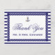 Anpassa den här Eleganten och snyggten, det moderna Nautical Bröllop Tack Postcard. Blå och vit strimlad mönster-design med en ankare för marin frakt överst. En mall för att enkelt anpassa ditt tack till din familj och gäst i bröllop. Samma design finns i andra matchande stationära bröllop-leveranser för att bära nautiskt bröllop-temat i stil.