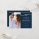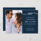Den här eleganten Spara datumkortet har ett nautiskt tema. Den har en nautisk ingenjörskonst överst och ett foto av paret i ett vitt ram. Kortet är perfekt för ett destinationsbröllop, en havsfront bröllop eller ett strandbröllop. Den blå färg-bakgrunden tillför en klasslig beröring.