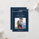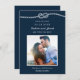 Den här eleganten Spara datumkortet har ett nautiskt tema. Den har en nautisk ingenjörskonst överst och ett foto av paret i ett vitt ram. Kortet är perfekt för ett destinationsbröllop, en havsfront bröllop eller ett strandbröllop. Den blå färg-bakgrunden tillför en klasslig beröring.