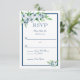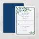 Det här Elegant marinkortet och det vita Bröllopet OSA är designat i mjukt vitt och blåa blommor på vit bakgrund med blått gräns. Den motsatta är en motsvarande blå bakgrund. Om du vill anpassa dig efter datum för svar infogar du bara exempeltexten till din vanliga mall. Se till att besöka hela Eleganten Navy & White Bröllop Collection.