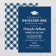 Fira i avslappnad stil med denna examensfestinbjudan i marinblå med en examenmössa-ikon och fet “Backyard BBQ”-rustik text. Perfekt för en öppen mottagning, grillfest eller sommarfest. Anpassa examenets namn, datum, tid, plats och svarsinformation. Baksidan har ett koordinerande marinblått gingham-mönster.