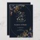 Elegant marin blåa blommor med guld löv på marin blå bakgrund. Spara det datum som kan anpassas med ditt namn på ett bra sätt.Välj knappen "anpassa" om du vill ändra teckensnittet stil, färg och storlekt.