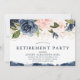 Elegant Navy Blommigt Guld Pension Party Inbjudningar