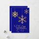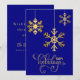 Elegant Navy Blue and Guld Snöflingor Helgdag Card Julkort