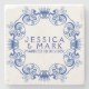 Elegant Navy Blue Blommigt Ram Underlägg Sten