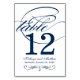 Elegant Navy Blue Calligraphy Bröllop Bordsnummer