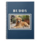 Elegant Navy Blue Dog Pet Photo Notebook. Organize your pet's memories or documents with this beautiful customizable notebook This design allows you to personalize the dog's name and a photo on the front. The elegant navy blue background with a classic framed photo makes it a perfect keepsake or a thoughtful gift for any dog lover. Ideal for pet records, photos, or office organization.