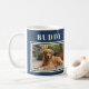 Elegant Navy Blue Dog Pet Photo Mug. Organize your pet's memories or documents with this beautiful customizable mug. This design allows you to personalize the dog's name and a photo. The elegant navy blue background with a classic framed photo makes it a perfect keepsake or a thoughtful gift for any dog lover.