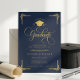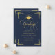 Announce a proud academic milestone with this elegant graduation announcement, designed with a rich navy blue background, refined gold typography, and classic decorative accents. Featuring ornate script lettering, a graduation cap emblem, and formal layout styling, this invitation is ideal for celebrating a college or university graduate in a timeless, sophisticated way.