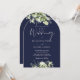 Elegant Navy Blue Greenery QR Code Bröllop Arch Inbjudningar