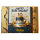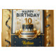 Fira en speciell milstolpe med denna elegant och sofistikerad födelsedagsdesign. Med ett vackert skiktat kaka fyllt med siffran "10" kombinerar det här kortet lyxfyllda marinblått och guld-accenter. Guld-ballonger, ett royal krona och ett känsligt rosett band, slutför det formella utseendet och skapar perfekten för en minnesvärd tionde födelsedagsfest eller firande. Den här designen kan enkelt anpassas med födelsedagstjuren eller flickans namn.