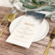 Elegant Navy Blue Guld Marble Bröllop Menu Meny
