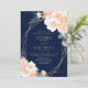 Elegant Navy Blue Guld Peach Blommigt Bröllop Inbjudningar