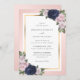 Elegant Navy Blue Guld Rosa Blommigt Bröllop Inbjudningar